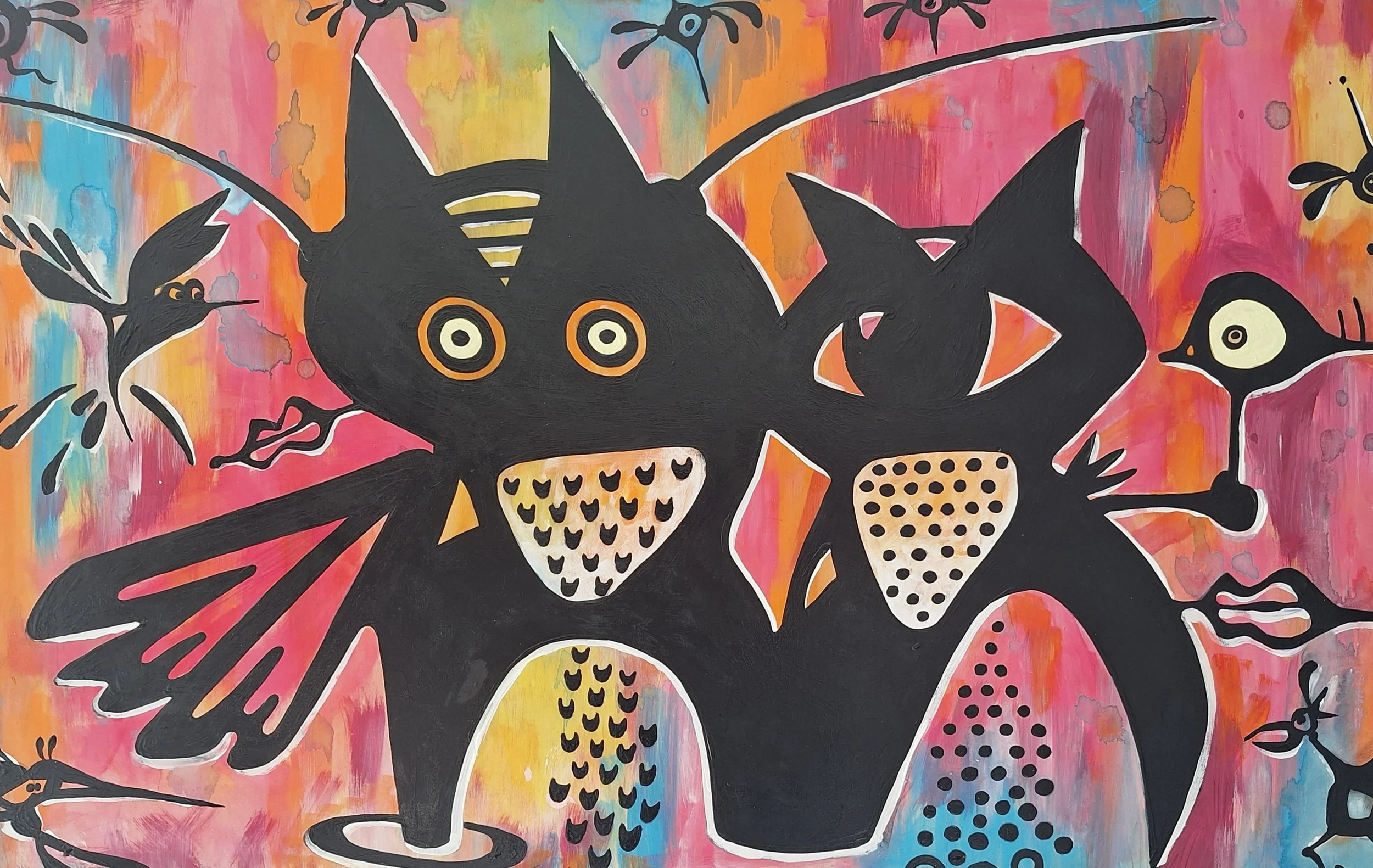 A recurring character in my work is the all-seeing eye—an ancient symbol that’s been watching us for a very long time. In my paintings, it becomes both mirror and portal: inviting introspection while reminding us that we’re part of something larger, stranger, and deeply interconnected.