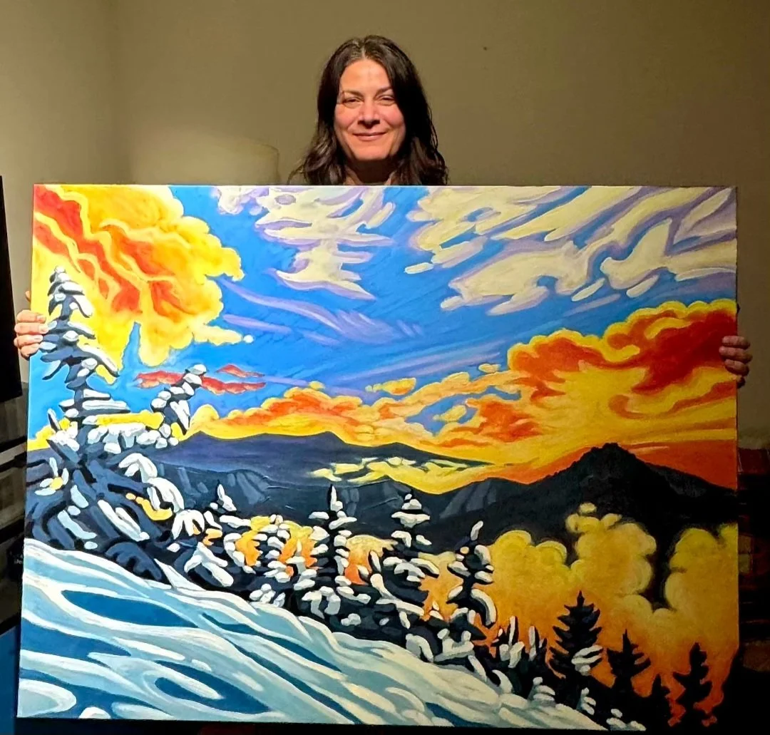 Christina wanted a collaborative painting experience with her daughter. Her vision was to recreate the Lawren Haris painting called Island of MacCullam Lake.